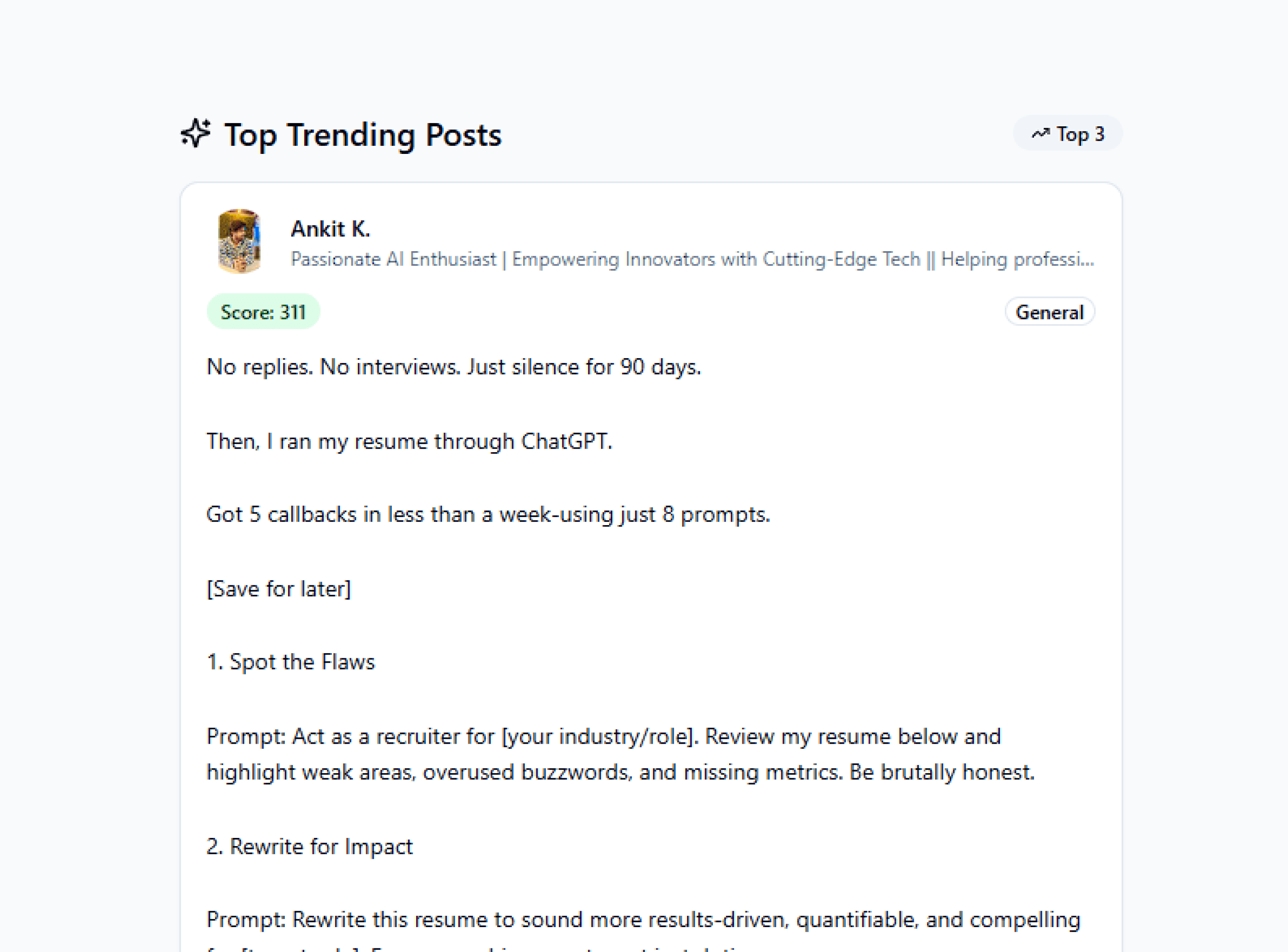Analyze your profile, rewrite your headline, and boost your visibility — all in one click.