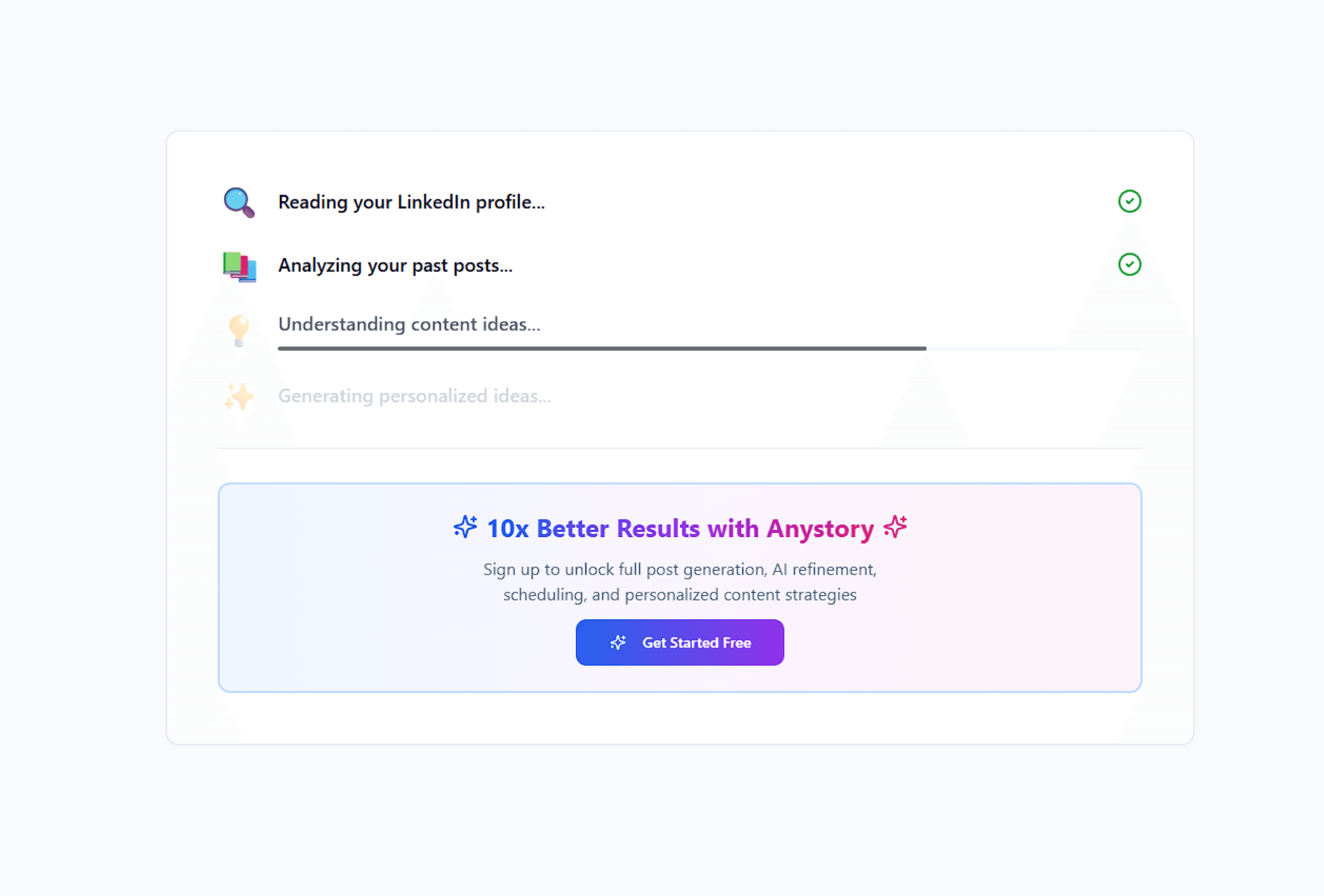 Need LinkedIn post ideas? Use our free AI tool to generate content ideas that match your profile, experience, and personal brand. No more blank pages—just scroll-stopping content in seconds.